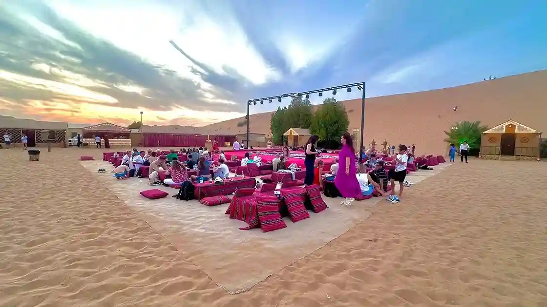 Most packages include pickup & drop-off, dune bashing, camel ride, sandboarding, live entertainment shows, BBQ dinner, and unlimited refreshments. The exact inclusions may vary depending on the package you select.